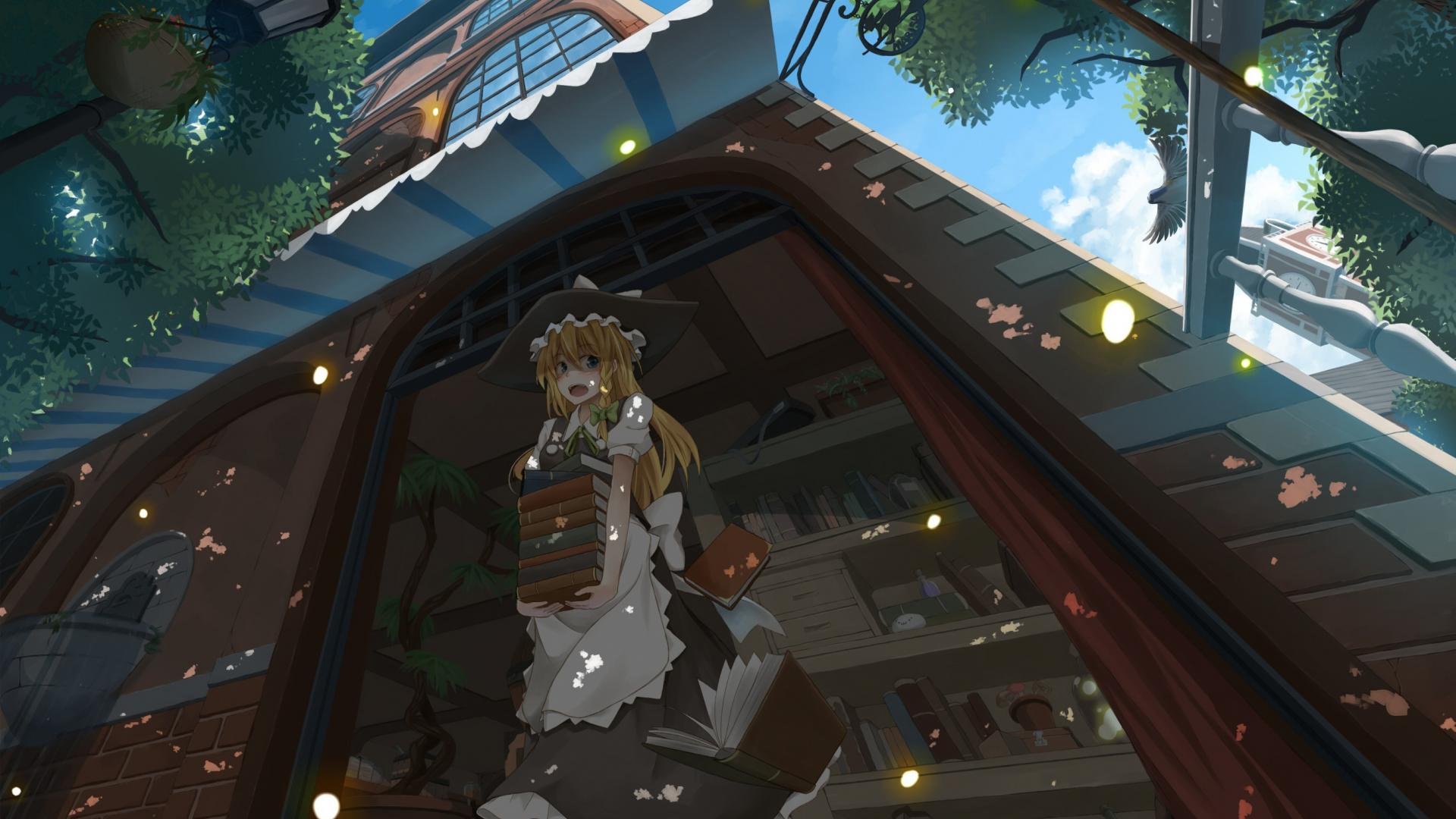 » Обои Девушка аниме со стопкой книг