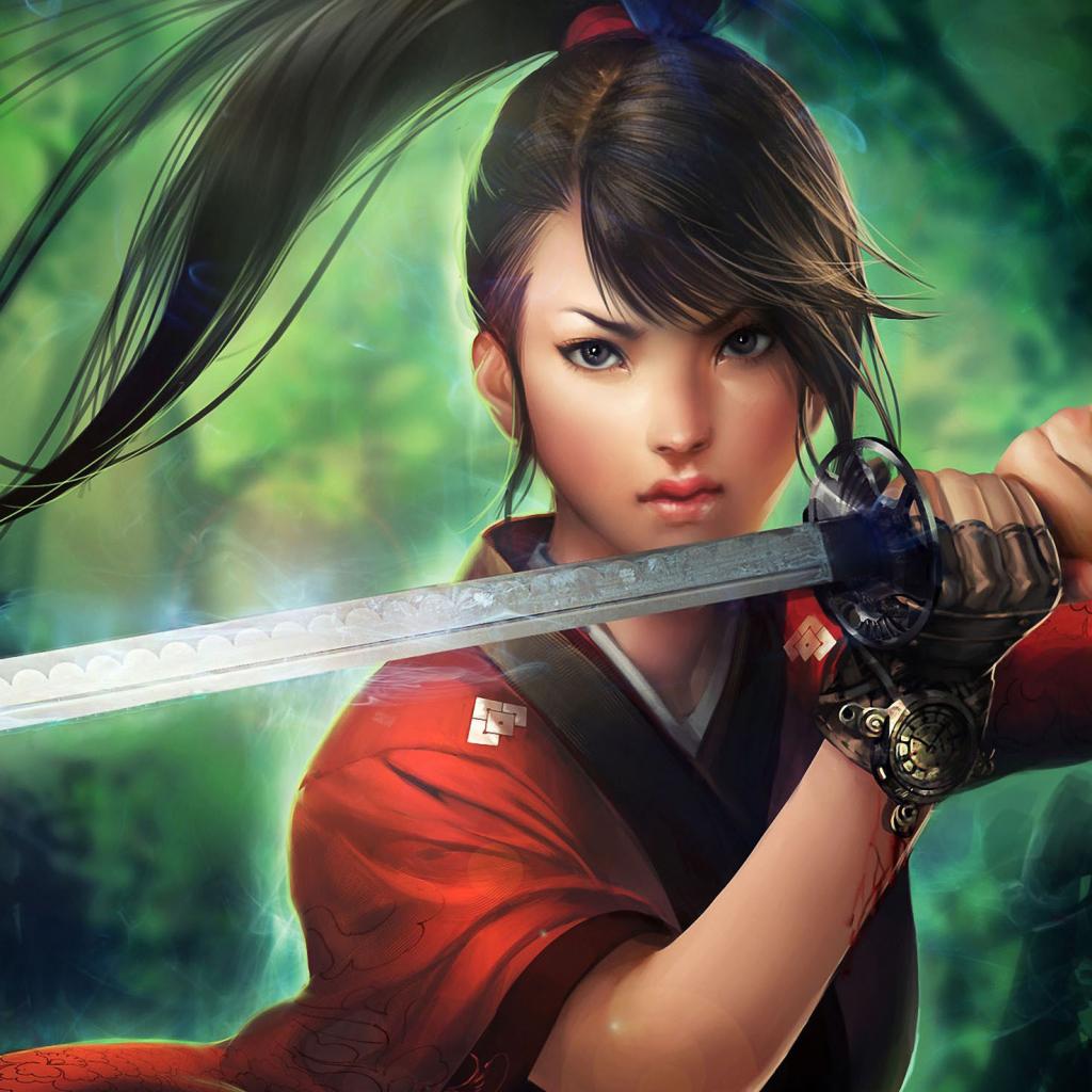 Обои Японская девушка с мечем