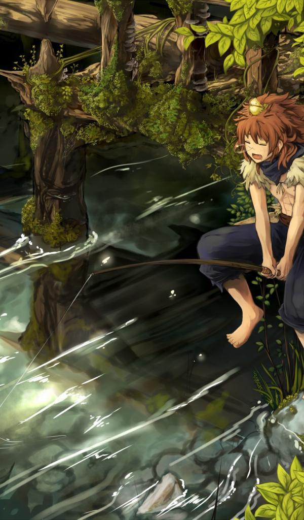 Обои Мальчик рыбачит