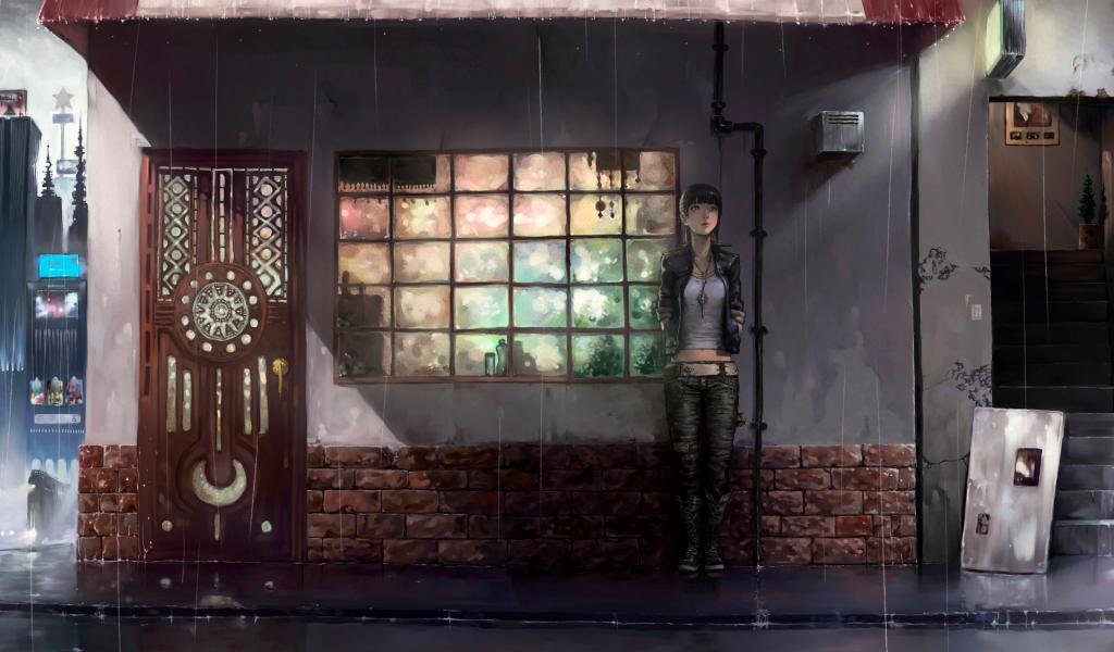 Обои Девушка прячется от дождя
