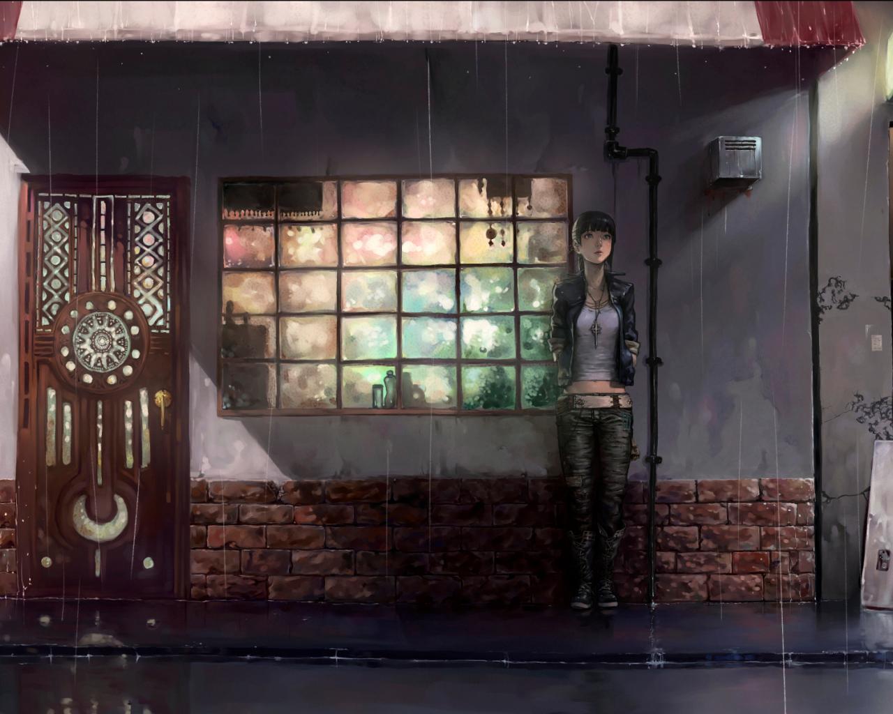 Обои Девушка прячется от дождя