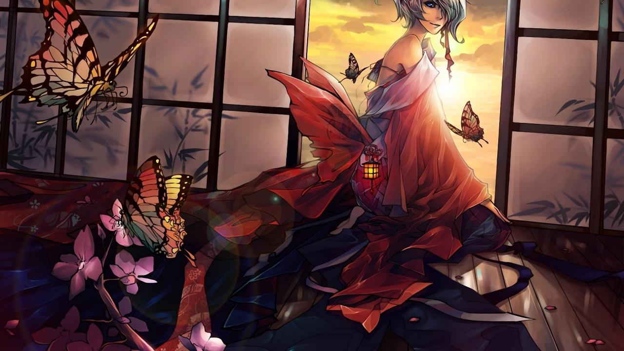 Обои Девушка и бабочки