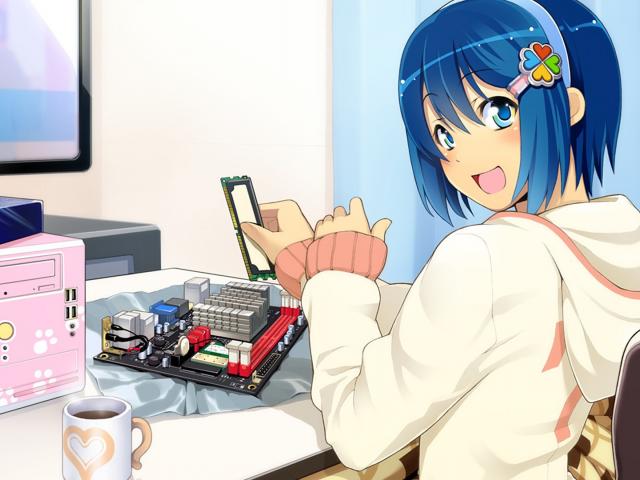 Обои Девочка собирает компьютер
