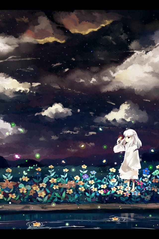 » Обои Девочка кидает цветы в воду