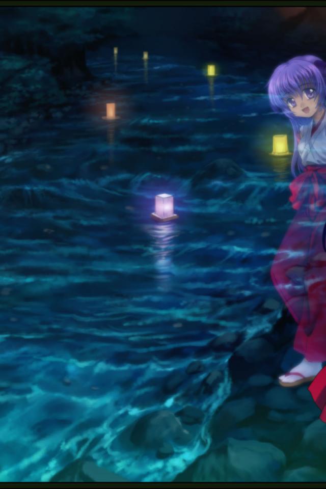 Обои Фонарики плывут по реке