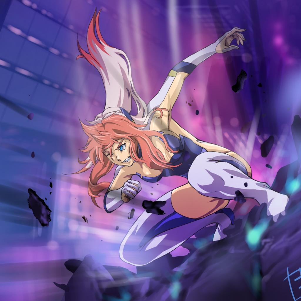 Обои Могучая красноволосая девушка аниме