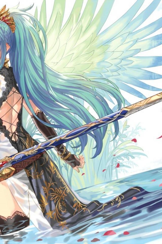 Обои Девушка с голубыми волосами и мечом