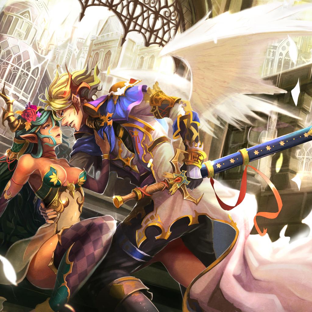 Обои Парень, крылья, эльфийка