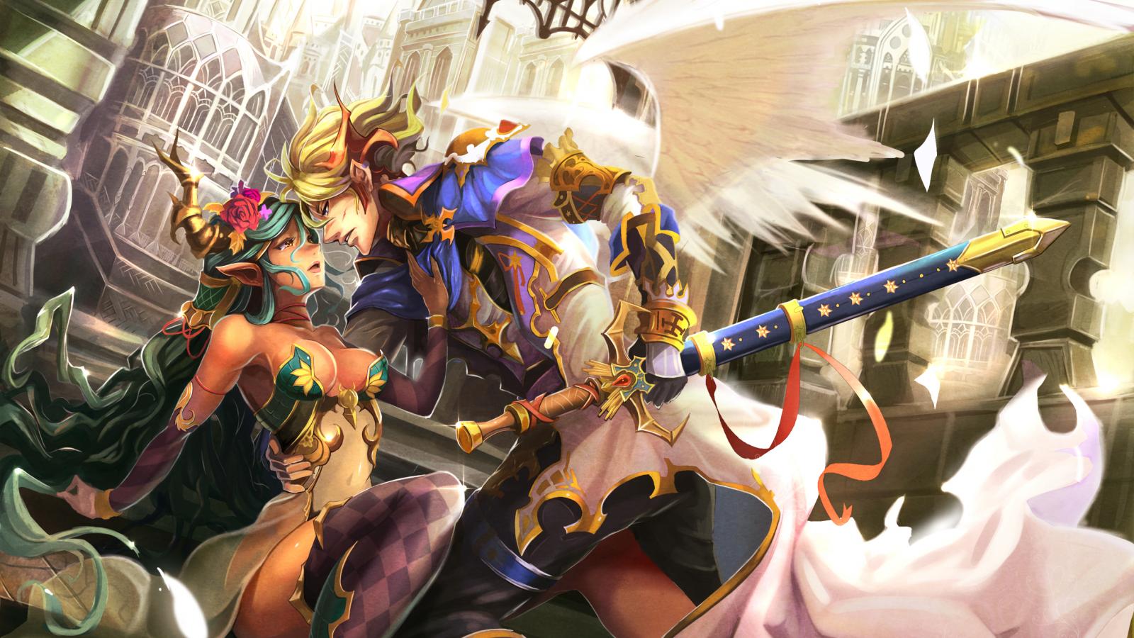 Обои Парень, крылья, эльфийка