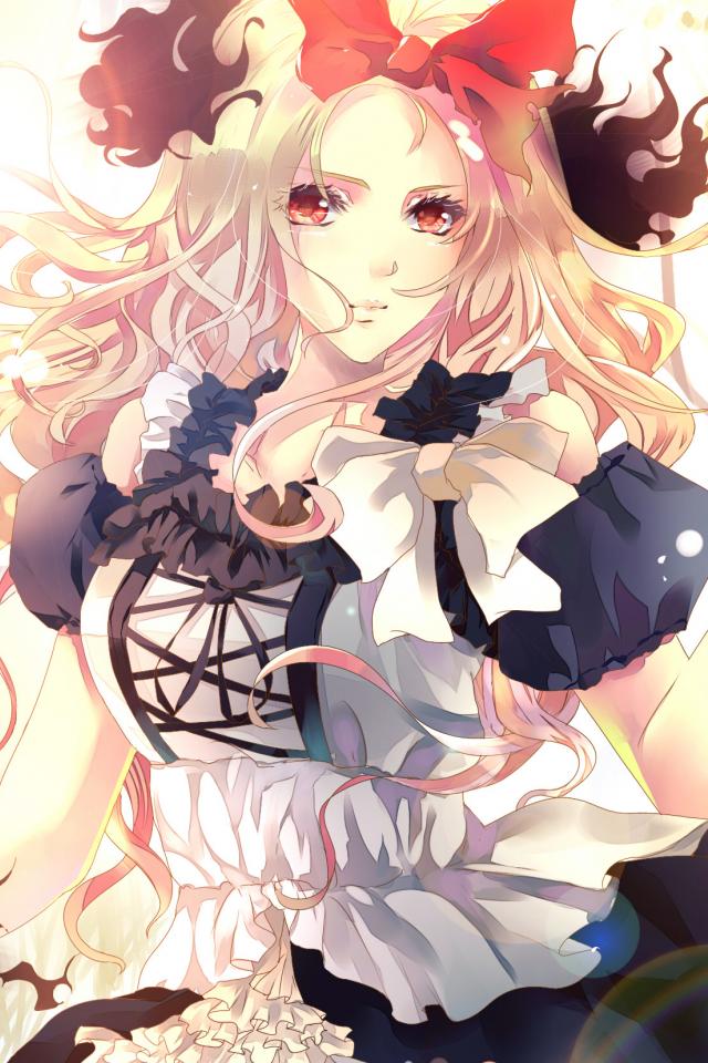 Обои Красные глаза, Парень, Бантик, Длинные волосы