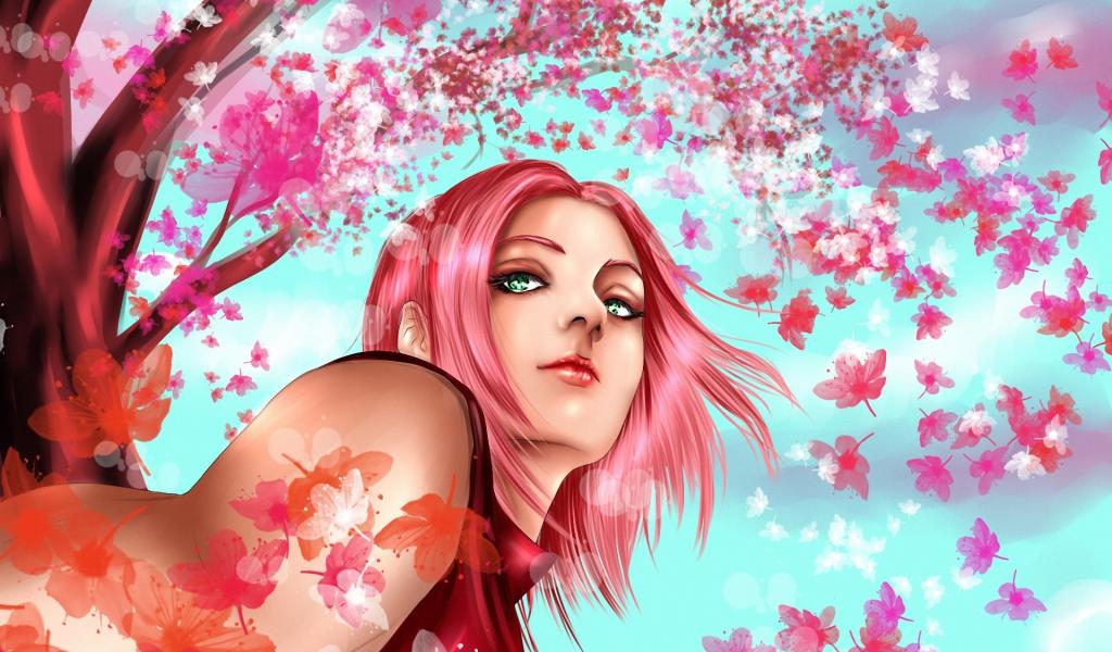 Обои Девушка аниме Сакура Харуно с персонажами Наруто