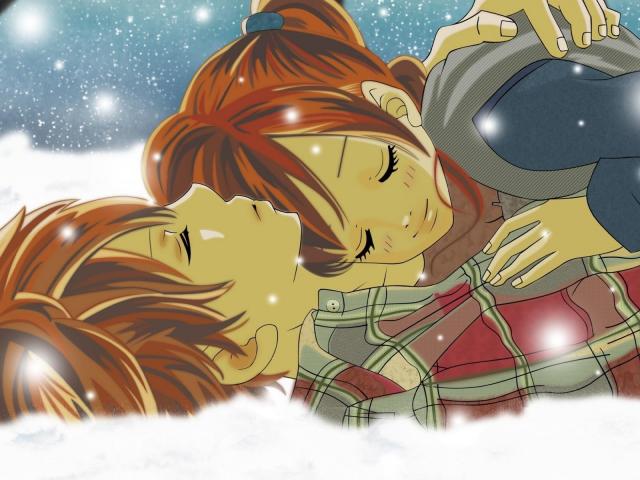 Обои Влюбленные на снегу