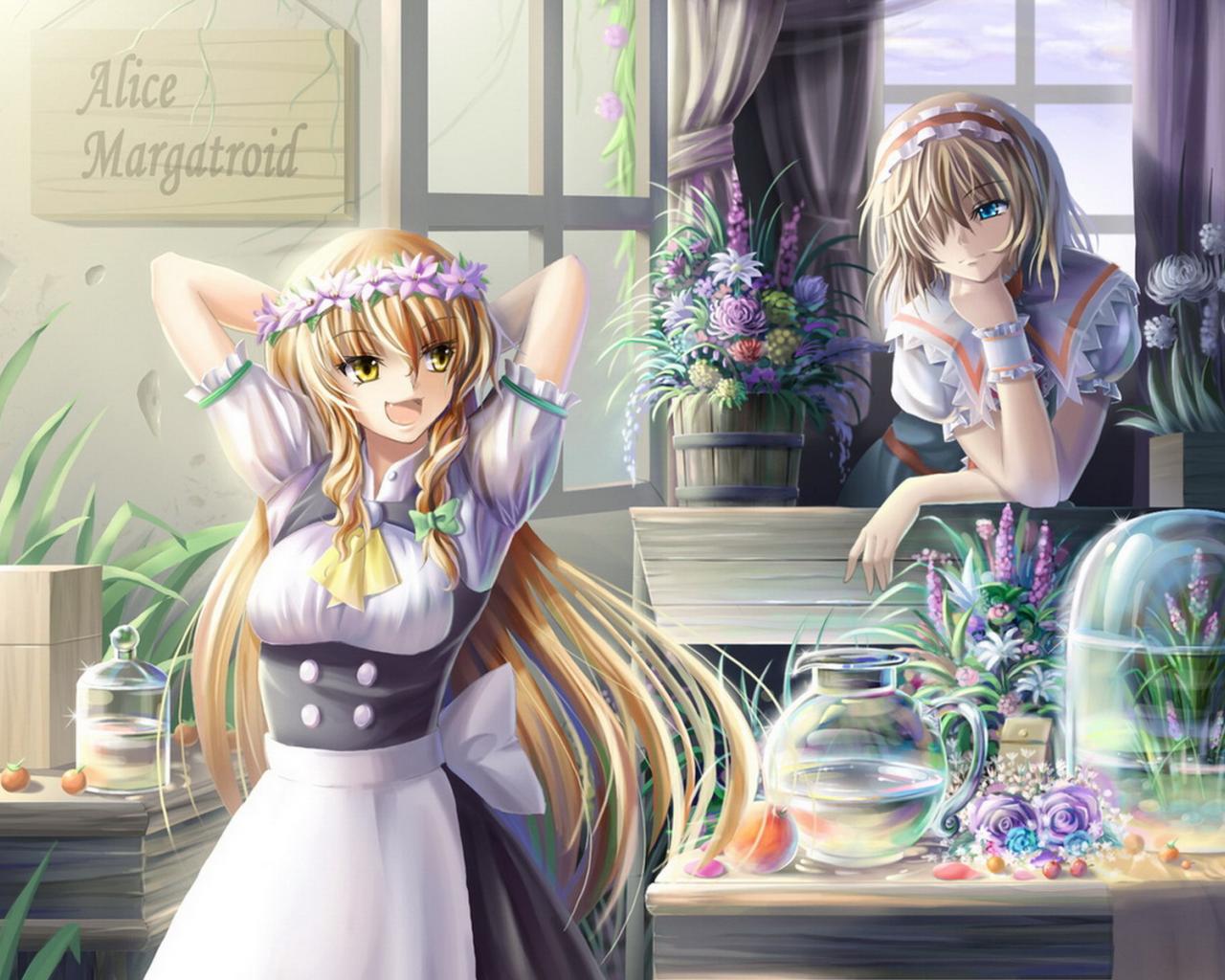 Обои Девчонки в цветочном магазине