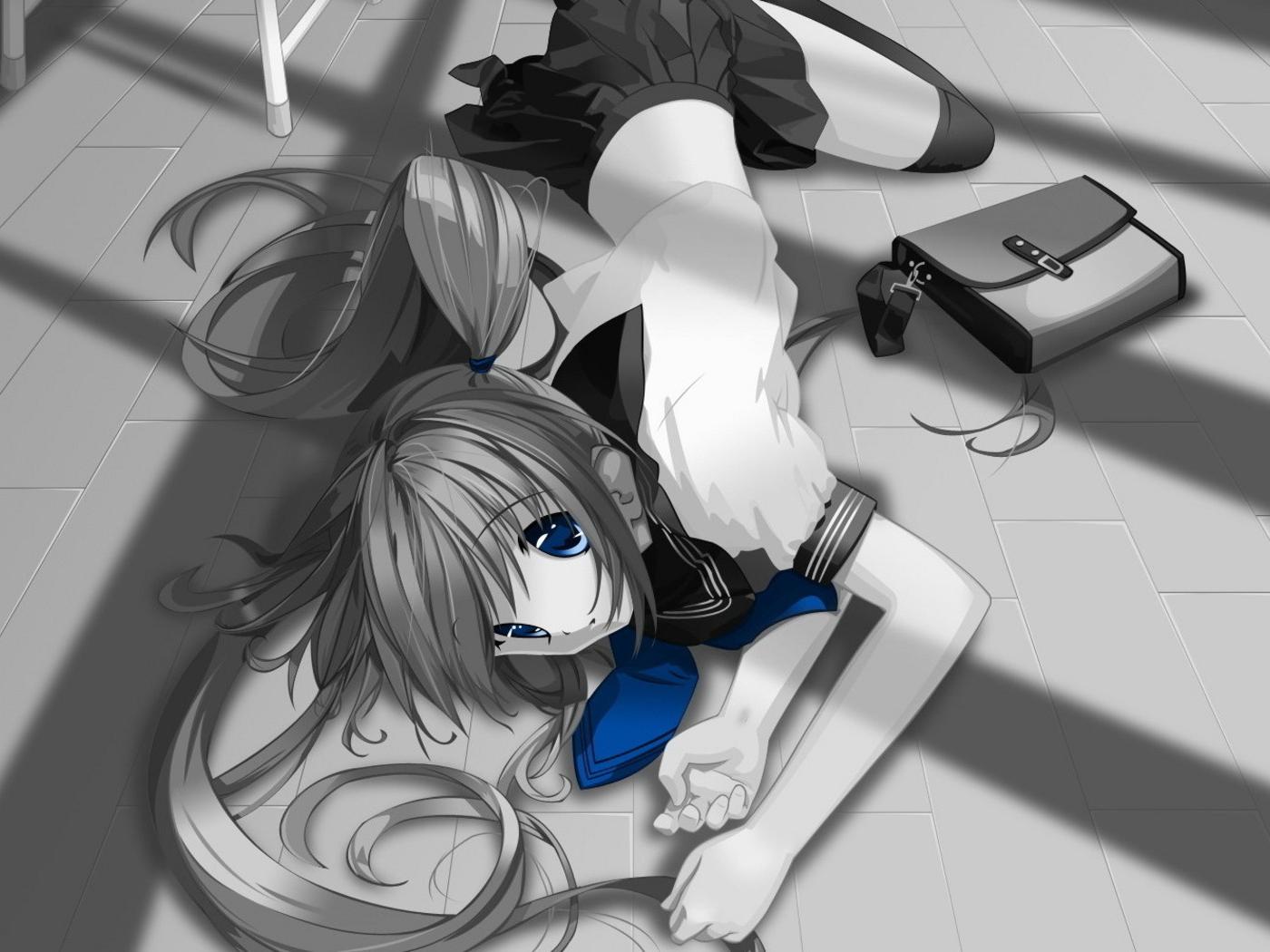 Обои Школьница на полу