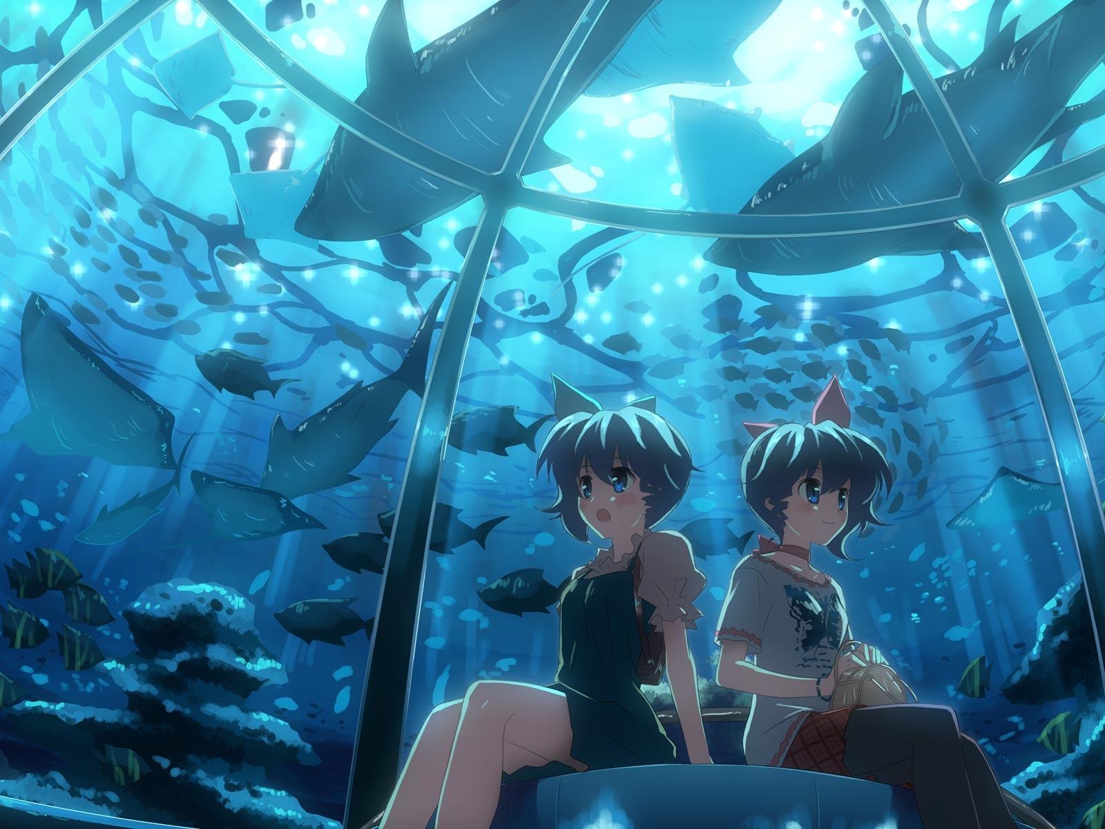 Обои Девчонки в океанариуме