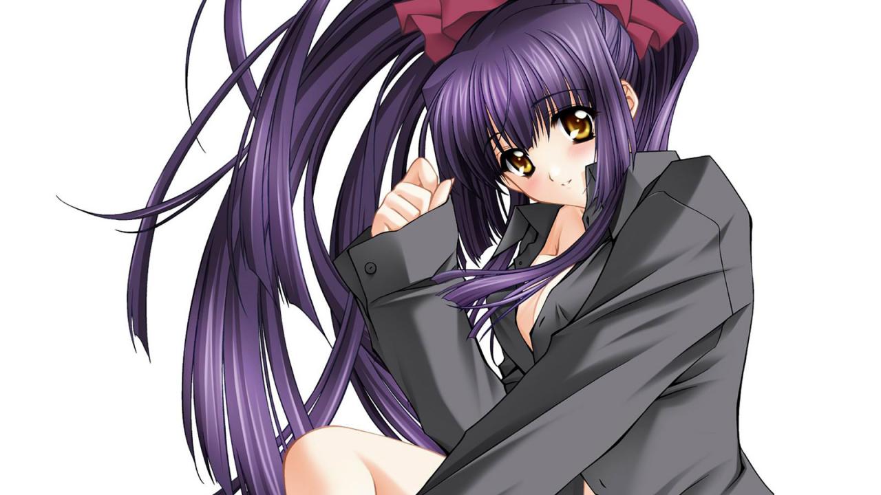 Обои Девушка в фиолетовом облегающем костюме
