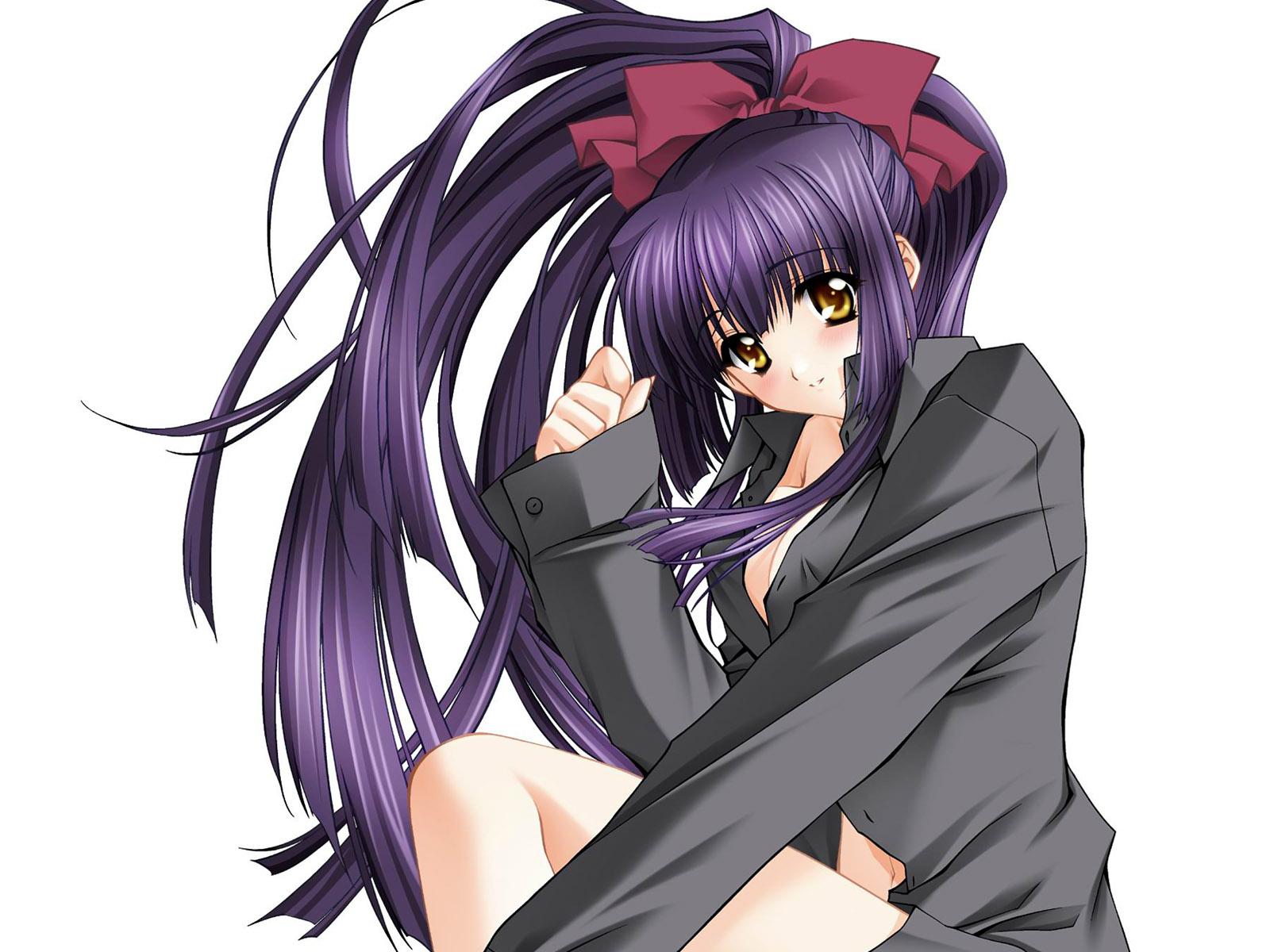 Обои Японская девушка в белом костюме сидит на берегу водоема