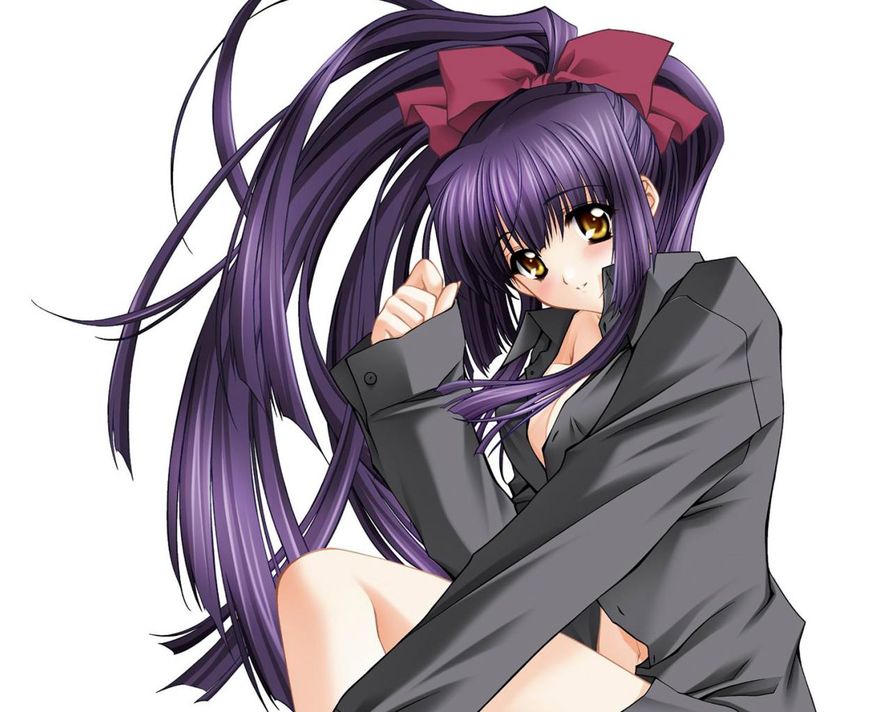 Обои Девушка в фиолетовом облегающем костюме