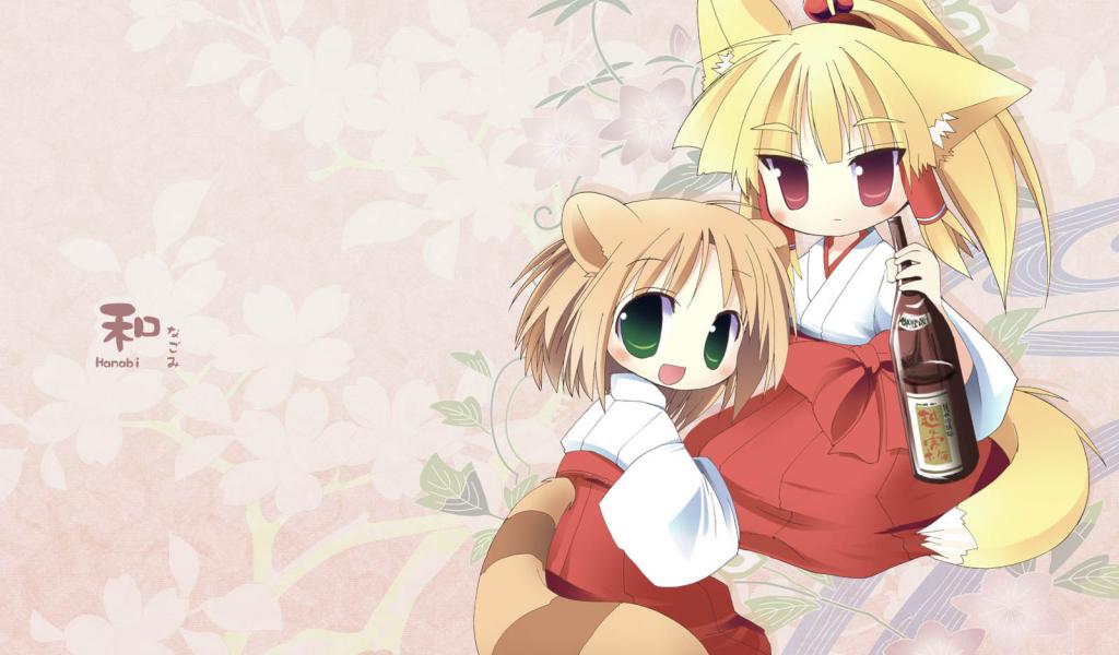 Обои Аниме Лисичка с вином