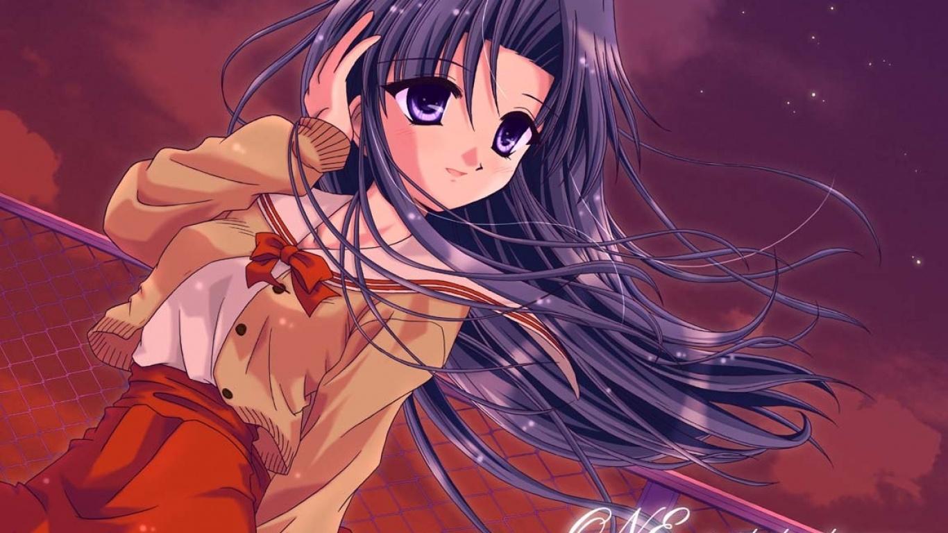 Обои Ветер бьет в лицо девушки аниме