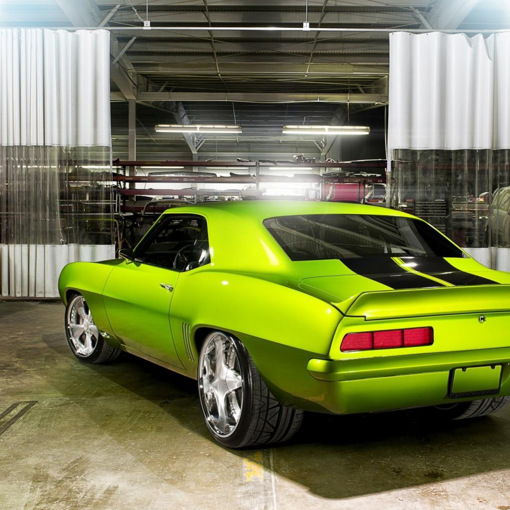 Обои Старый зеленый автомобиль на реставрации