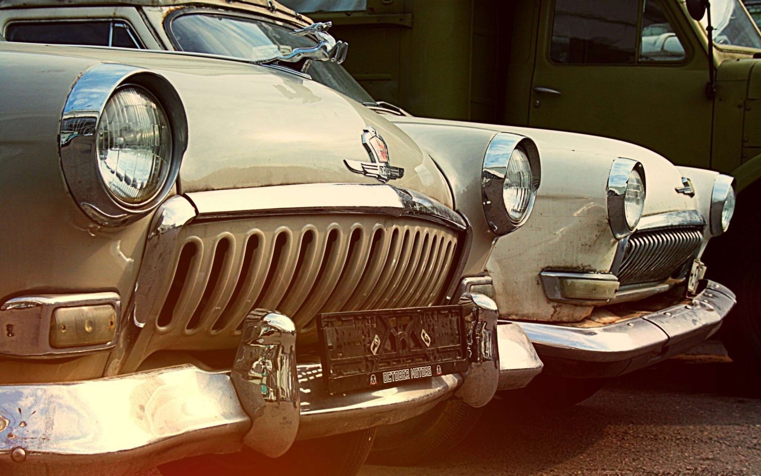 Обои Два старых автомбиля марки Волга