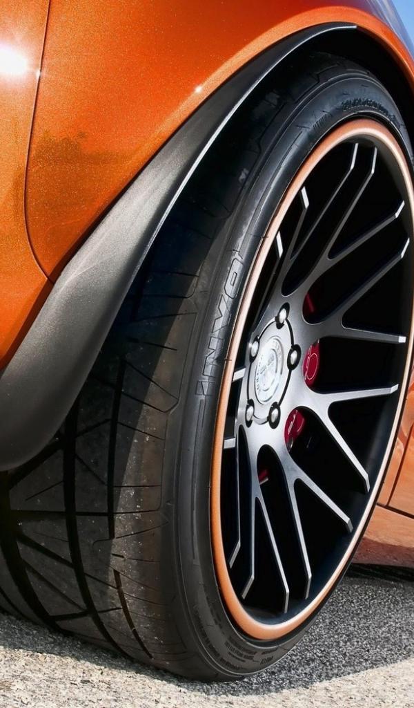 Обои Черные колеса оранжевого авто