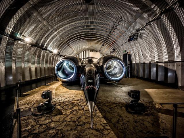 Обои Скоростной автомобиль Thrust SSC в ангаре