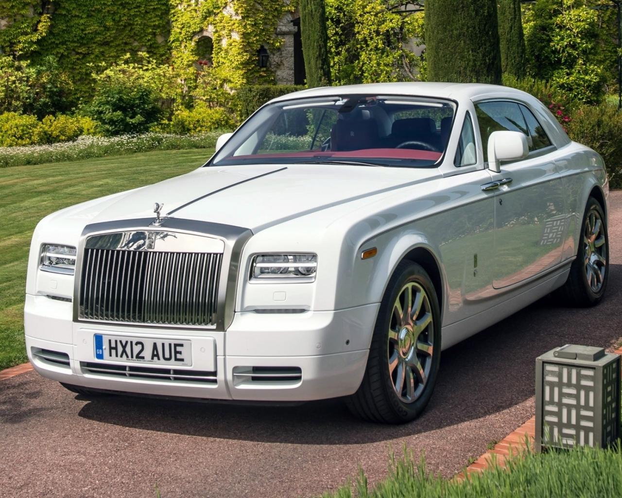 Обои Роскошный белый Rolls-Royce на дорожке