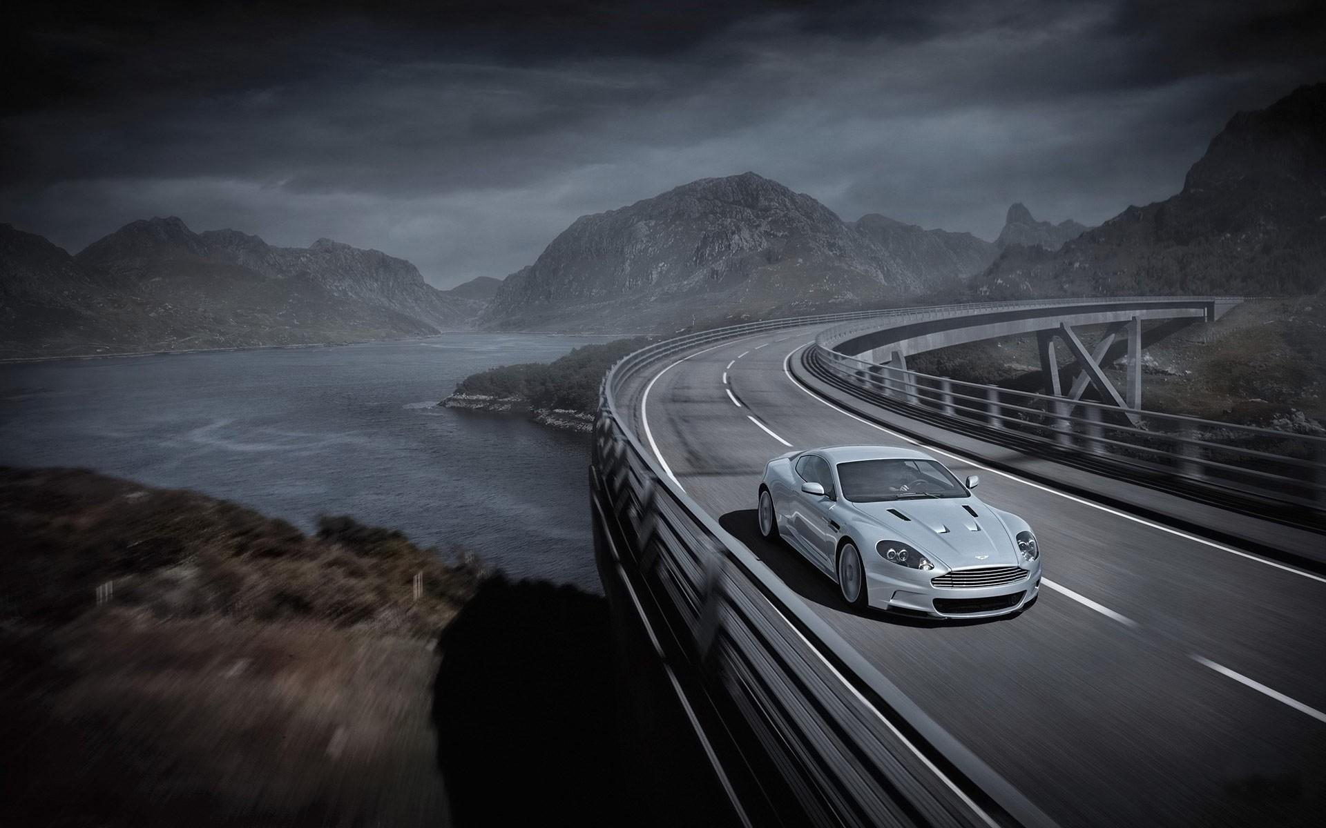Обои Быстрый автомобиль проехал мост
