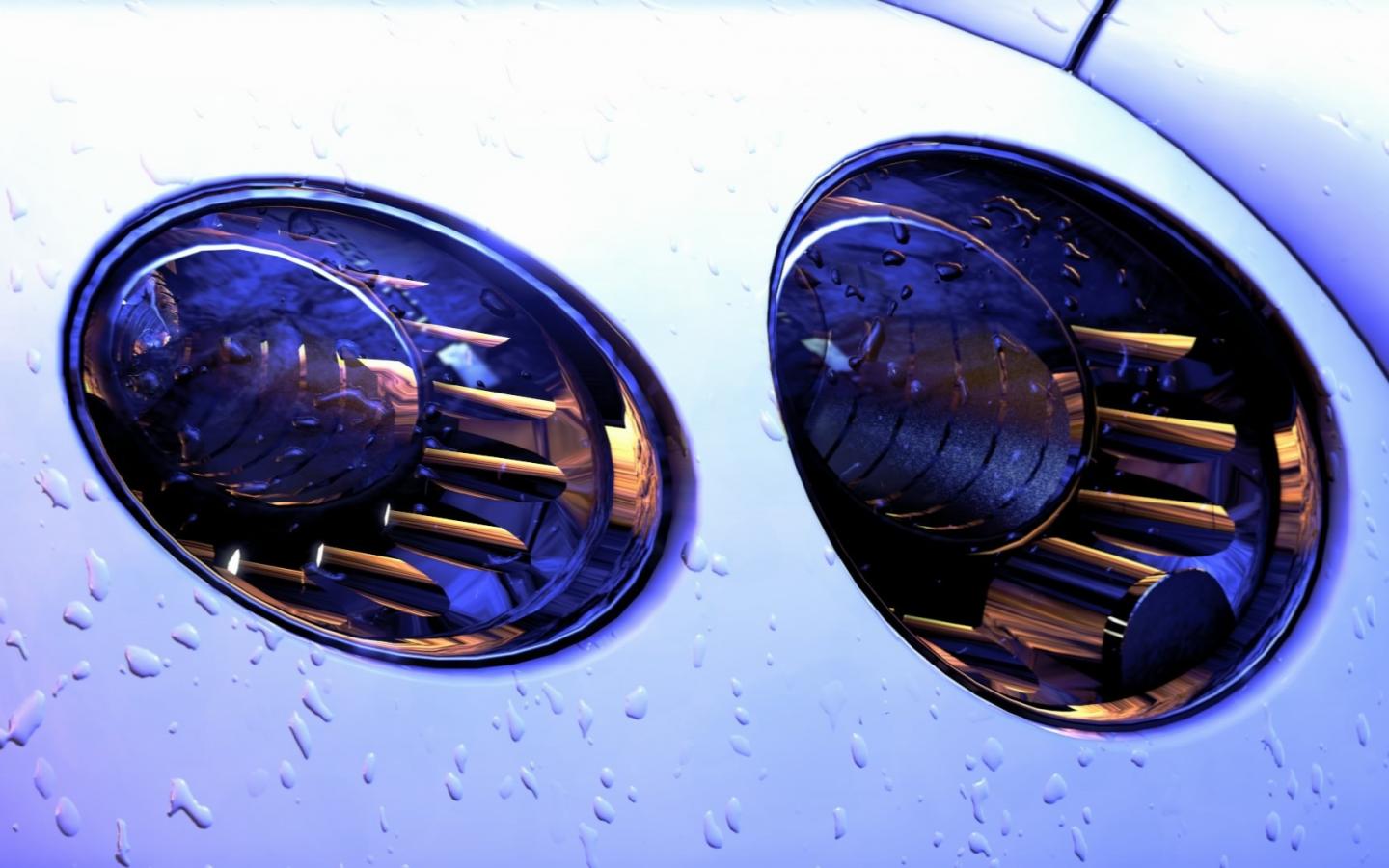 Обои Фары белого автомобиля, дождь