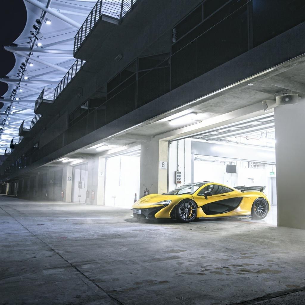 Обои Желтый McLaren выезжает из гаража