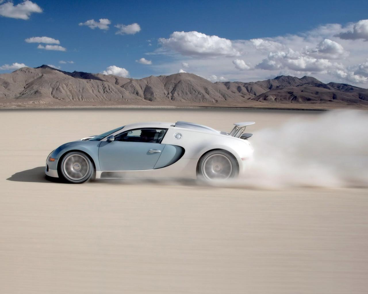 Обои Поездка на автомобиле Бугатти по песку
