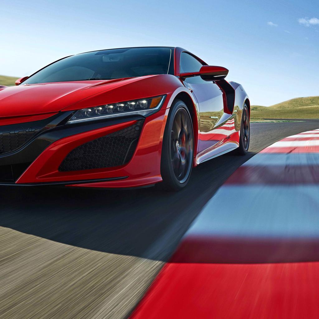 Обои Дорогой красный автомобиль Acura NSX, 2019 на трассе