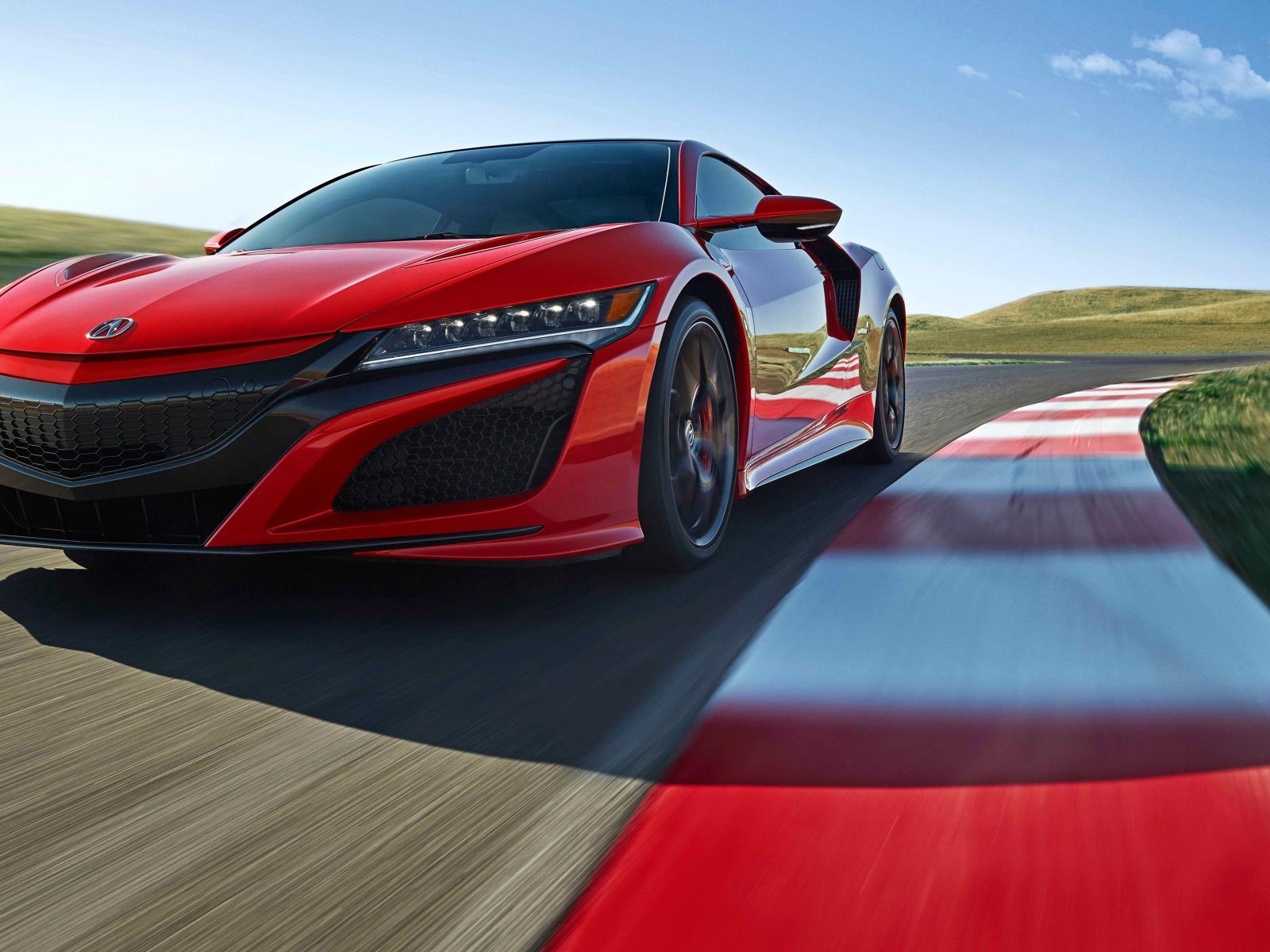 Обои Дорогой красный автомобиль Acura NSX, 2019 на трассе