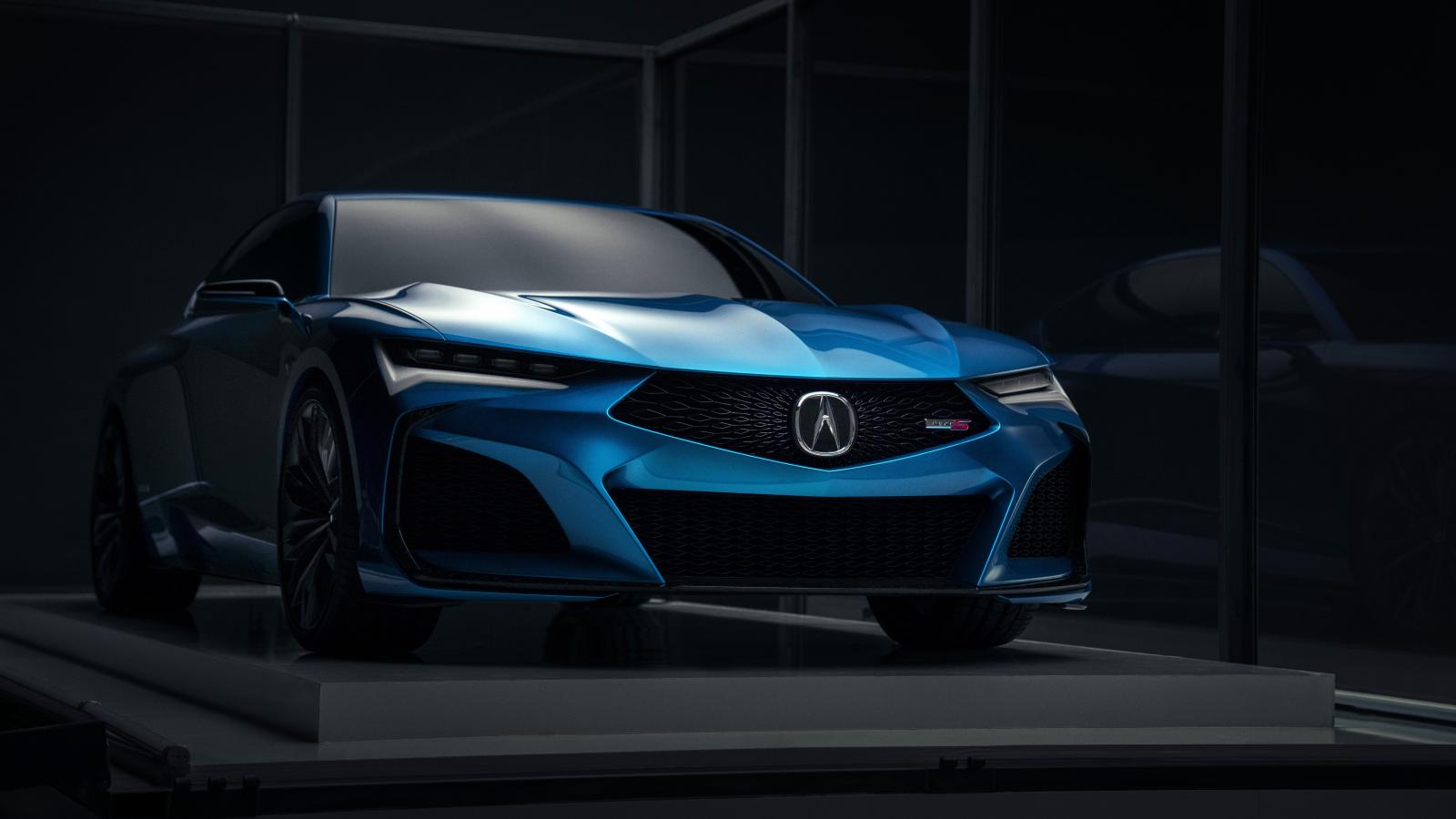 Обои Синий автомобиль Acura Type S Concept 2019 года на презентации