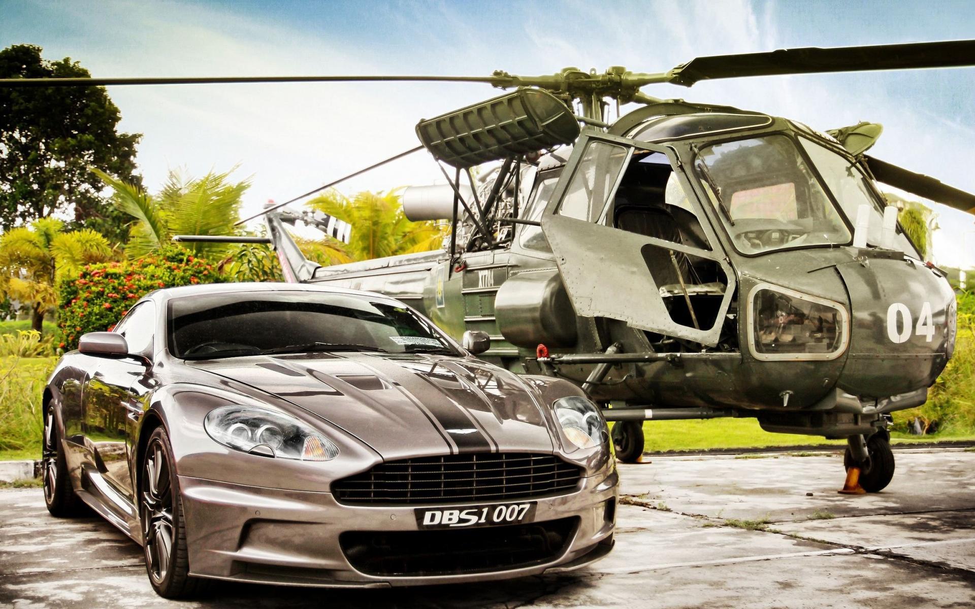 Обои Астон мартин у вертолета