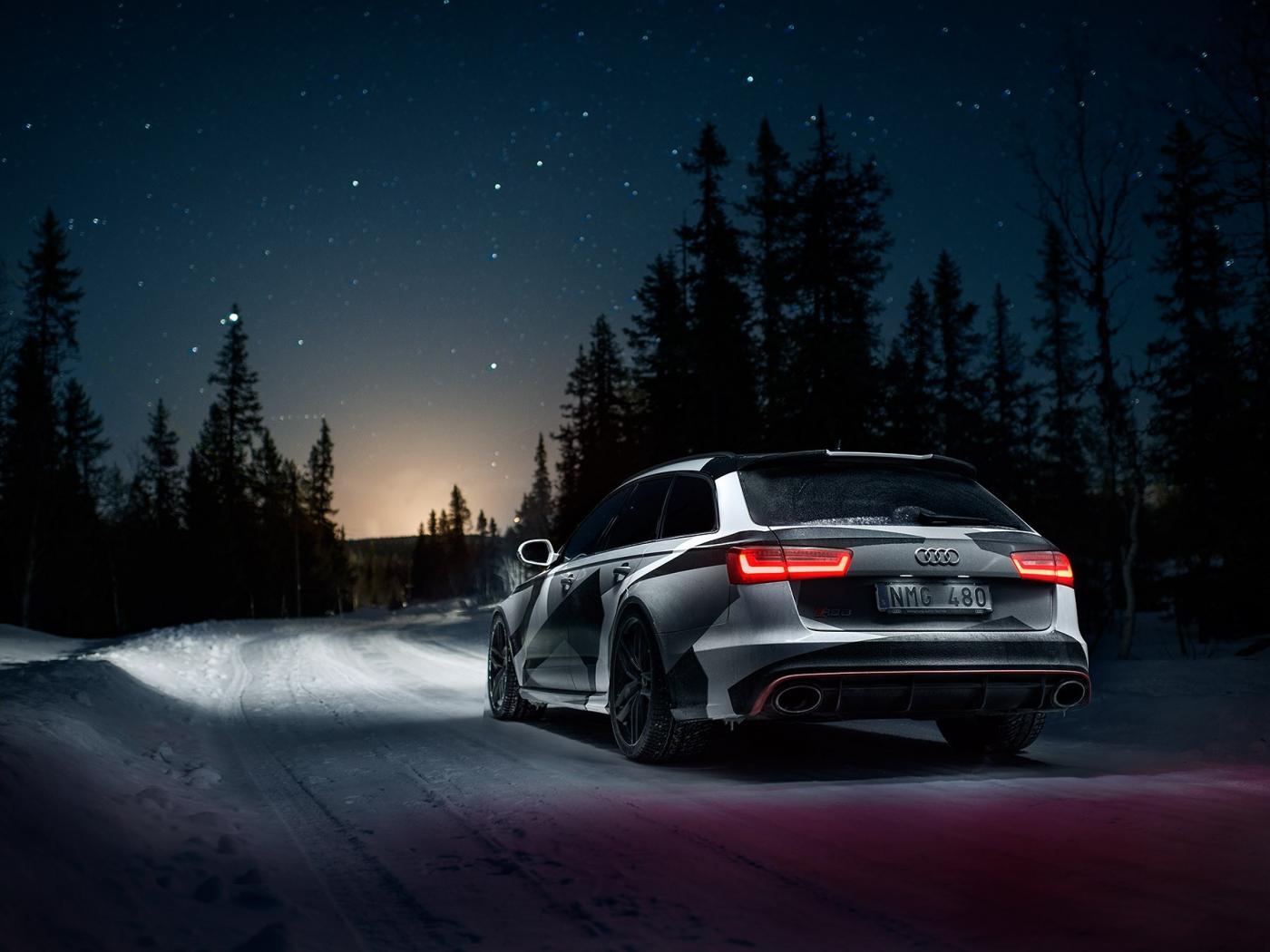 Обои Audi RS6 Avant на ночной дороге