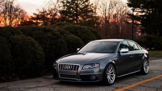 Обои Темно серый Ауди у живой изгороди