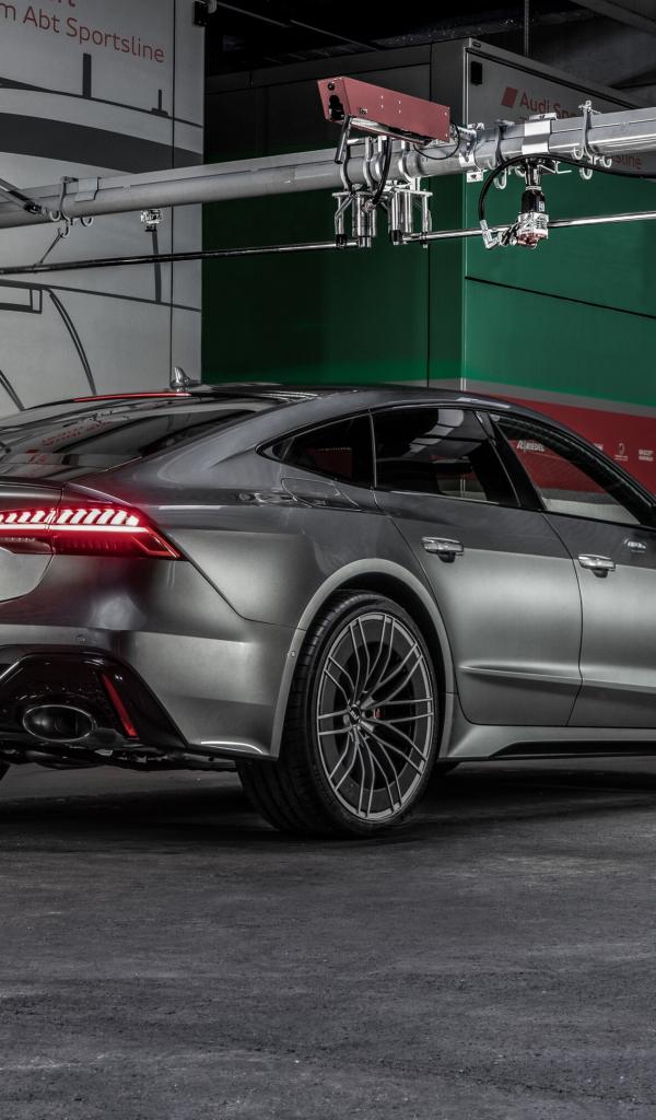 Обои Серебристый автомобиль Audi RS 7 Sportback 2020 года вид сзади