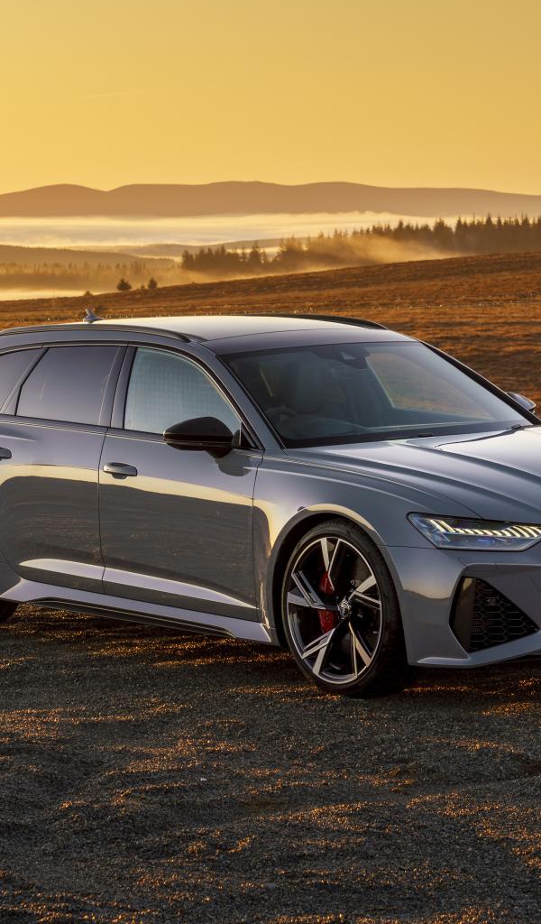 Обои Автомобиль Audi RS 6 Avant 2020 года на фоне заката