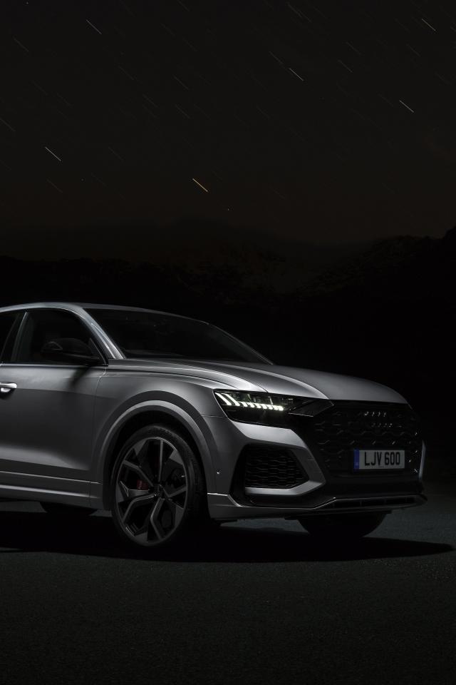 Обои Серебристый автомобиль Audi RS Q8 2020 года ночью