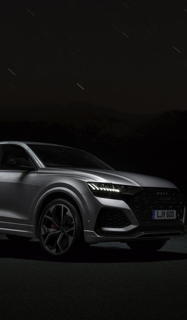 Обои Серебристый автомобиль Audi RS Q8 2020 года ночью
