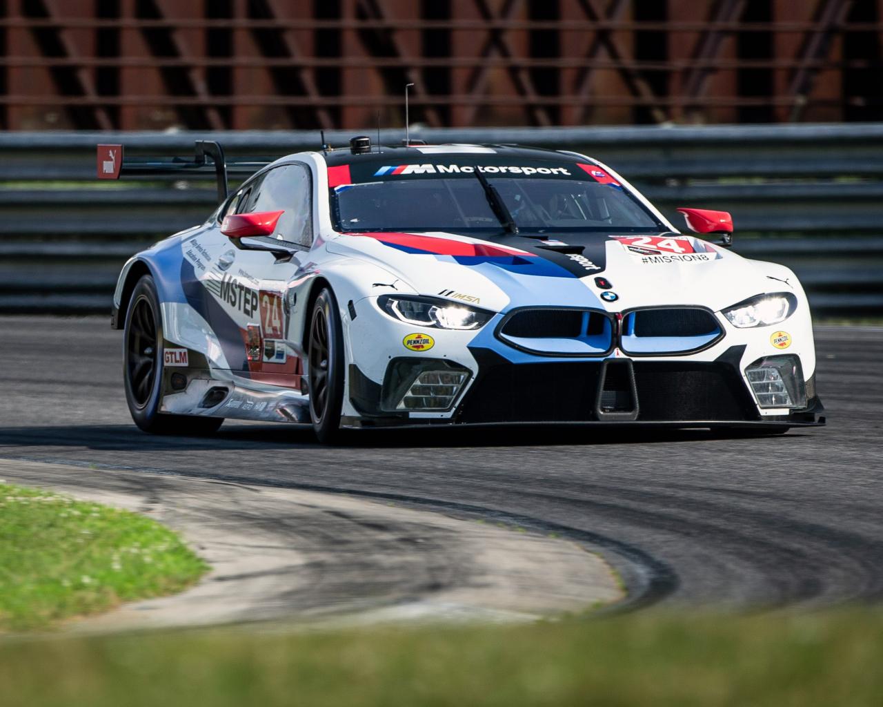 Обои Спортивный автомобиль BMW M8 GTE 2020 на гоночной трассе