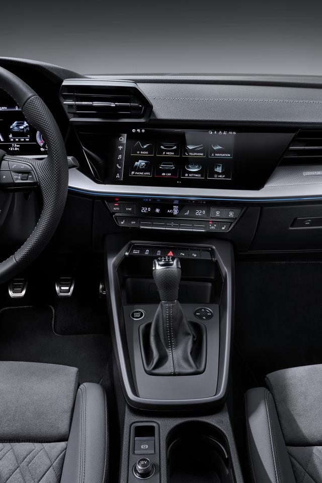 Обои Черный кожаный салон автомобиля Audi A3 Sportback 35 TFSI 2020 года