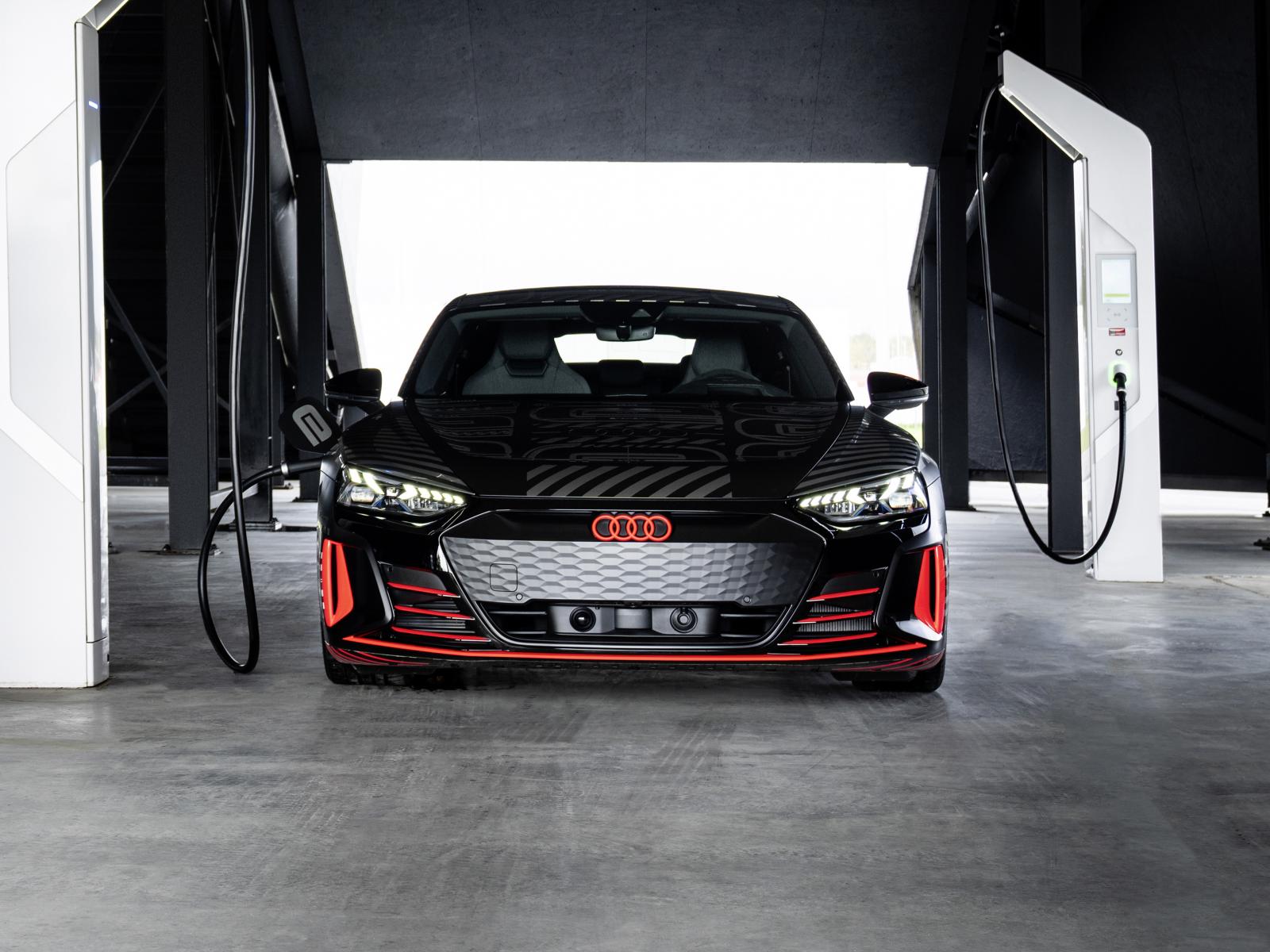 Обои Автомобиль Audi RS E-Tron GT, 2021 года на заправке