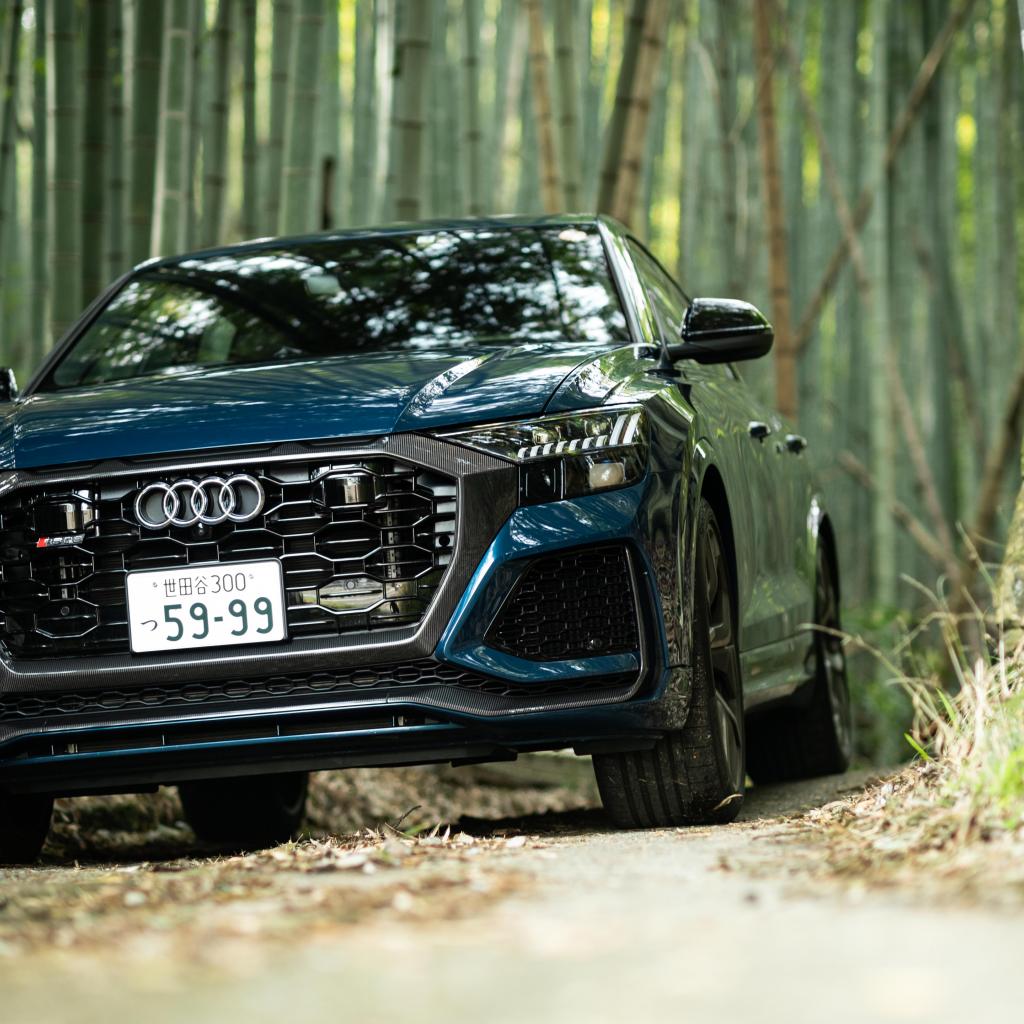 Обои Автомобиль Audi RS Q8 2021 года в лесу