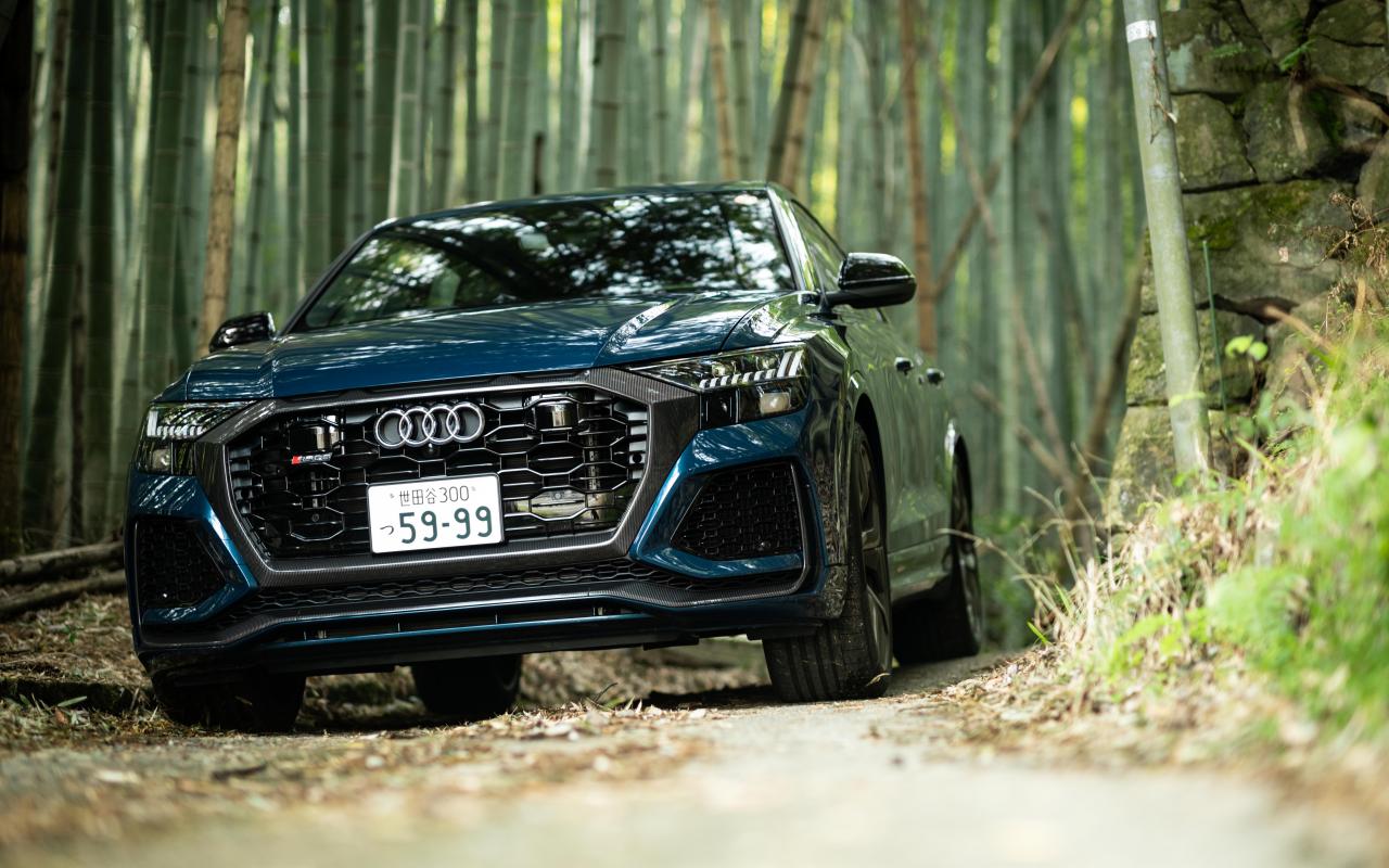 Обои Автомобиль Audi RS Q8 2021 года в лесу