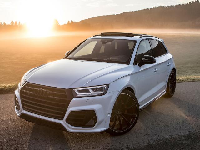 Обои Белый автомобиль Audi SQ5, 2018 года на рассвете