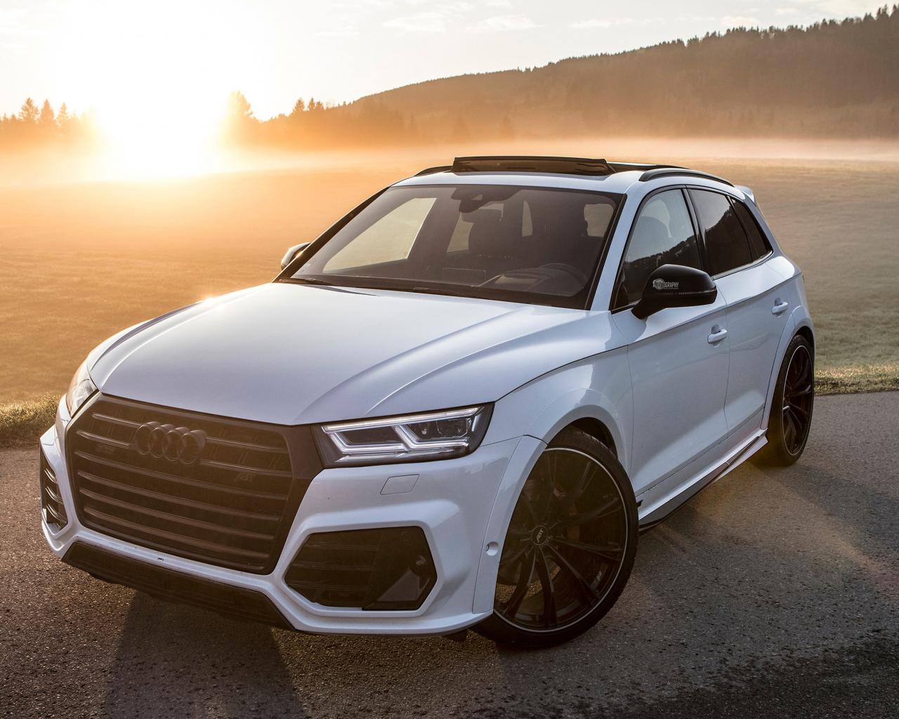 Обои Белый автомобиль Audi SQ5, 2018 года на рассвете